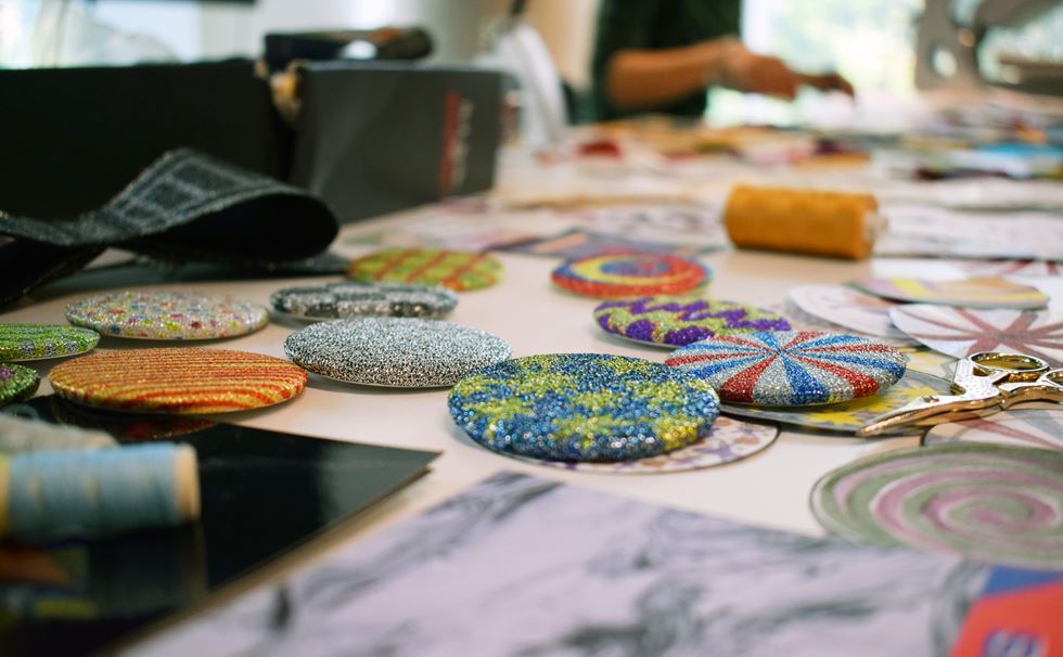 Working with fabrics and pre-made patches from Sadie's studio, participants will hand-paint their own designs before applying them onto fabric using a heat press to transfer their designs onto sparkly lurex. They will also explore simple stencilling methods to design striking metallic foiled prints onto denim. Throughout the session, they will consider scale, colour and placement of the patches and badges to customise their garments.