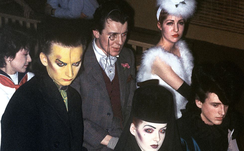 'Blitz Kids' Vivienne Lynn, Boy George, Chris Sullivan, Kim Bowen, Theresa Thurmer, and a Blitz attendee, 1980. © Derek Ridgers c/o Unravel Productions