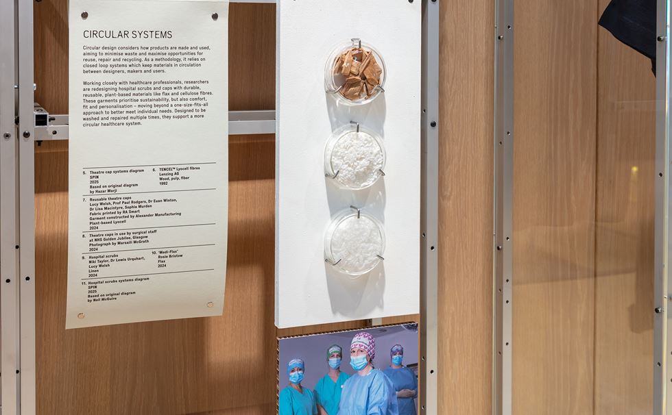 The display begins in Scotland’s hospitals, exploring ways in which the NHS can reduce its environmental footprint. From circular waste systems to new digital services and toolkits, researchers are designing scalable interventions to transform the UK’s healthcare services.