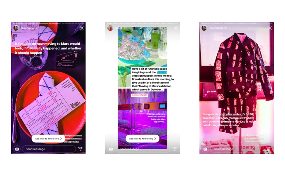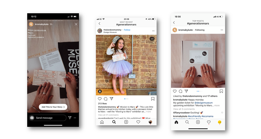 To generate interest ahead of the exhibition preview, Instagram micro-influencers were mailed Mars packs which included their flight ticket to the exhibition.