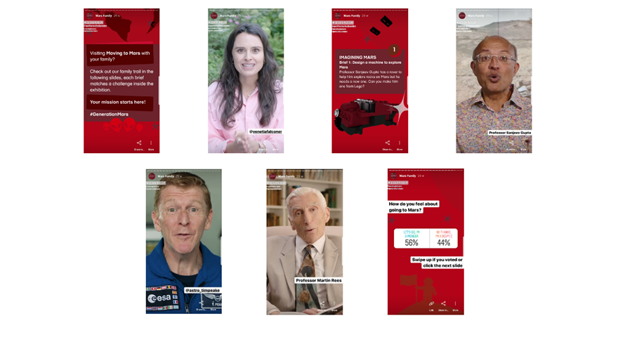The team also got creative with Instagram Stories to recreate a digital 'paper' Family Trail - as an Instagram Experience. The highlighted Story featured animations by Petter Scholander and videos with astronaut Tim Peake, Professor Sanjeev Gupta from Imperial College London, Astronomer Royal Martin Rees and climate activist Venetia Falconer.