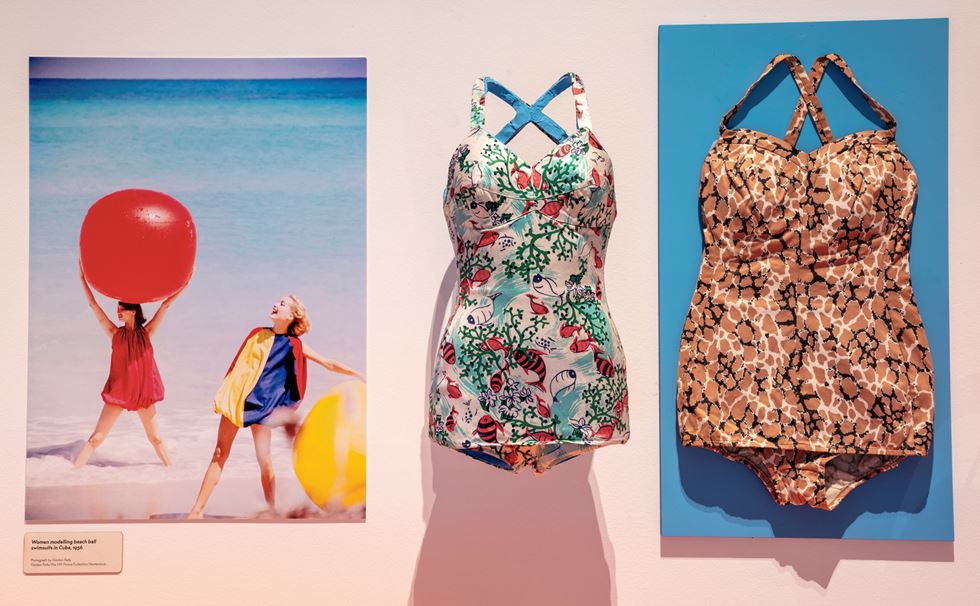The exhibition’s story starts in the 1920s, when swimwear began to be marketed for swimming rather than the Victorian’s preference for bathing, and when beach holidays exploded in popularity. It explores right up to the present day, and swimming’s role in modern life such as how it influences and subverts our ideas of body autonomy and agency, as well as its link to environmental issues.