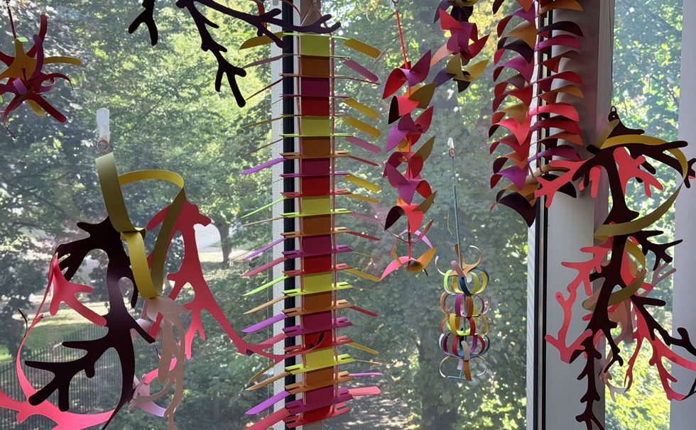 In this workshop, Bethan invites you to experiment with laminated papercutting, twisting, and assembling pieces to create your own festive streamers and hanging decorations. You can select and combine seaweed-inspired shapes designed by Bethan, or design and hand-cut your own shapes. You will learn how to work with and bend laminated paper, combining textures and colours to create vibrant new designs to hang at home.