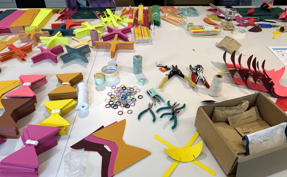 Join designer Bethan Laura Wood as she guides you in creating swaying festive streamers from laminated paper pieces, inspired by seaweed and kites. Cut, twist, and assemble your own design pieces and discover how the studio collaborates with manufacturers to bring imaginative concepts to life.